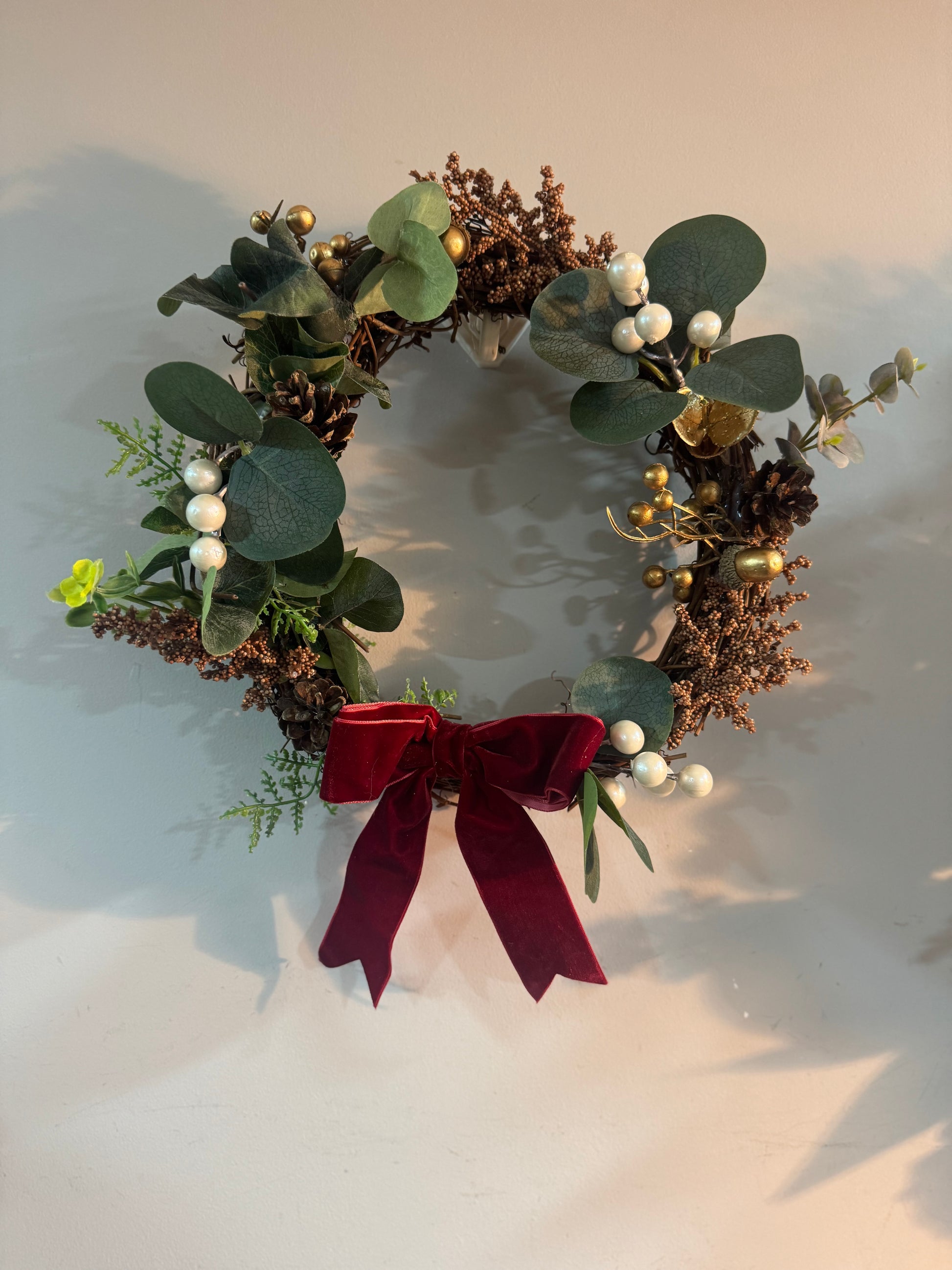A gorgeous wreathe in these festive Reds that can be hung on a wall or as a centrepiece with a candle in the middle .