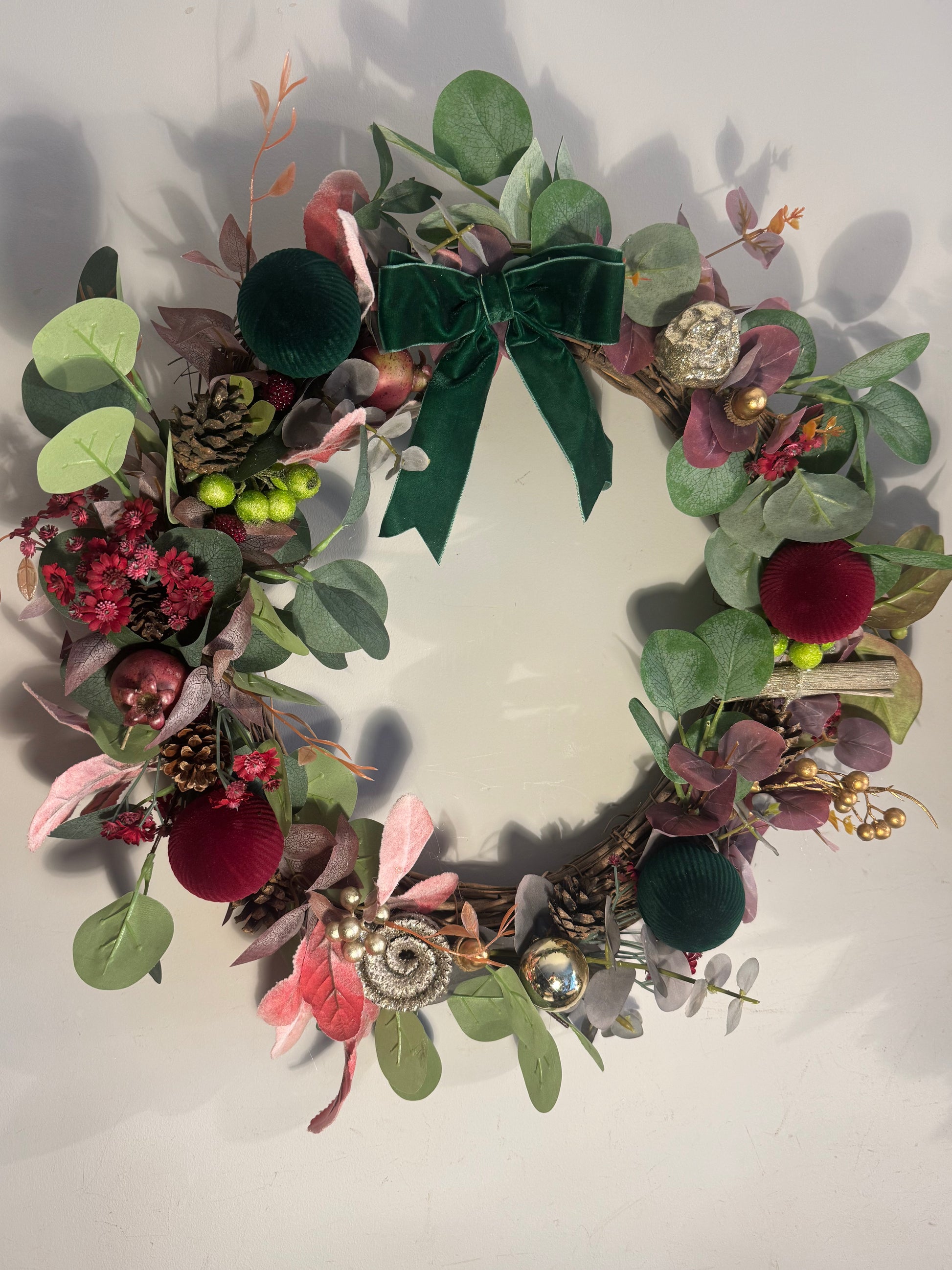 This wreathe brings a festive blend of rustic wood, warmth and natures charm into your home.